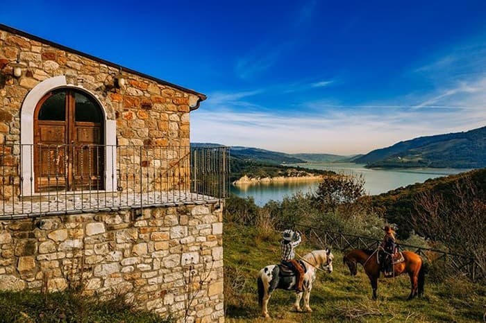 A delicious breakfast will be served at 9 AM. The typical morning mist that lingers around the reservoir will gradually dissipate. It's time to set off! The horses will be prepared. The excursion will move along the many paths in the area for a few hours. You will appreciate the notable variety of flora and fauna living near the lake. You might spot a family of wild boars, perhaps a wolf or a small otter. You will also see the soaring flights of kites and buzzards. At 1:30 PM, a picnic lunch will be served by the lake, then, after some relaxation, the journey will continue toward the ancient Maniero Cerulli. Here, dinner will be served, and guests will be welcomed for the night.