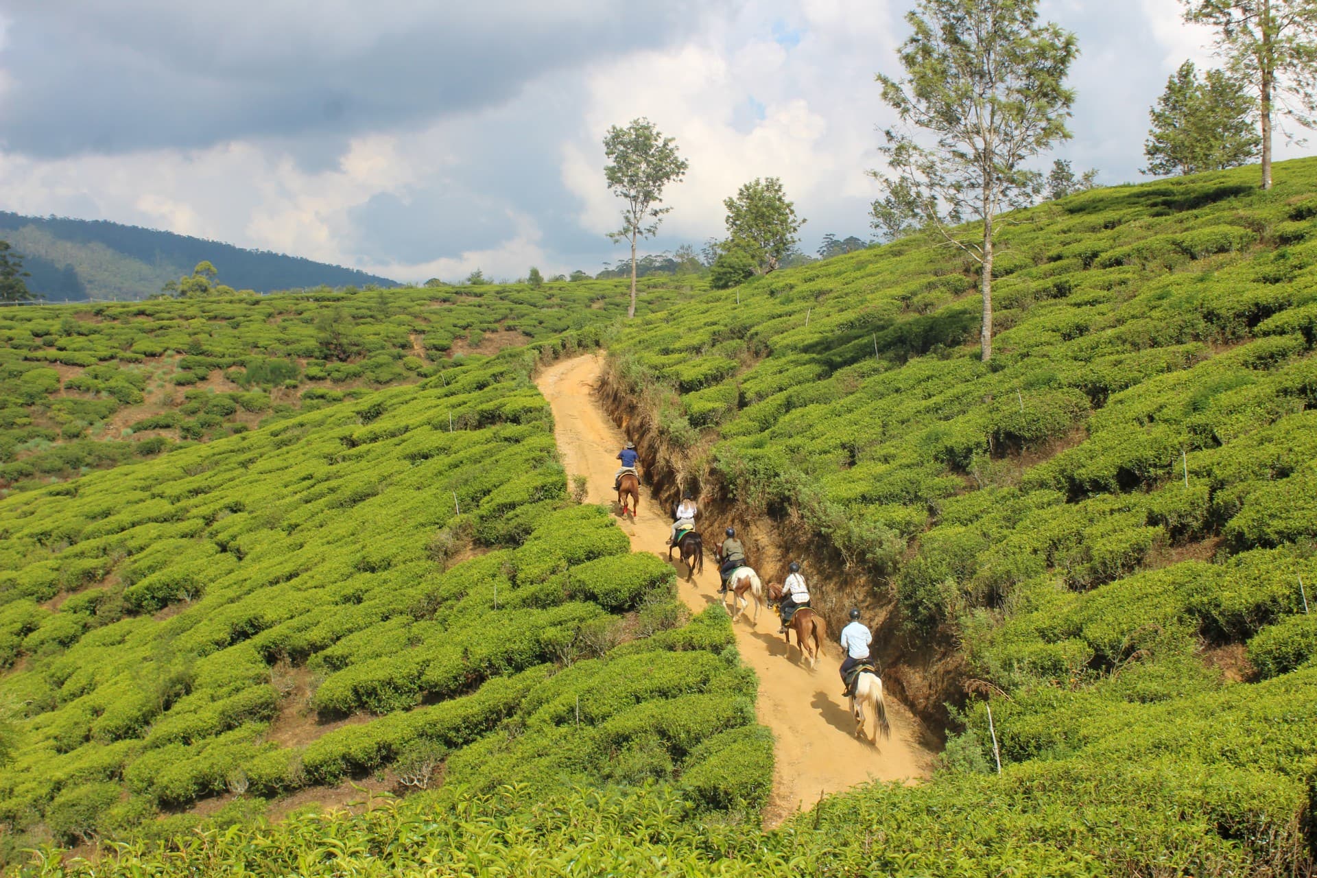Transfer by vehicle from Kandy to Nuwara Eliya, known as "Little England." Along the way, we will have the opportunity to visit a tea factory, where you will learn about the production processes. Once we arrive at our destination, the horses will be waiting for us to start our trek from the stables of the racecourse. We will ride through the surrounding hills to Mahagastota and Pattipola, through tea plantations and forests until reaching Kande Ela. Dinner and overnight stay.