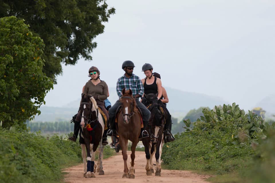 After breakfast, horseback riding begins, starting our trek at Kimbissa, near Sigiriya Rock. Crossing lush vegetation, we will visit a Buddha temple in a cave surrounded by jungle and then reach Kandalama Lake before arriving at Alkin Resort.