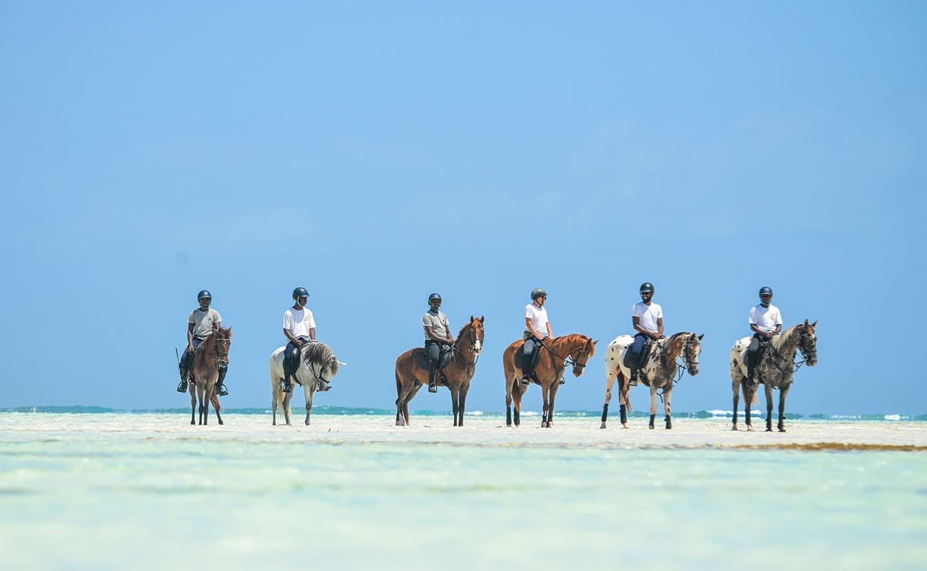 This ride explores the sandbanks, depending on the tides and could take place early in the morning or in the late afternoon. Walk to the stables where, after being assigned a horse, you will ride through the village of Nungwi to reach the stunning sandbanks that emerge during extreme low tide—shaped by the moon. You may never again see sand so white or waters so crystal-clear. This trek is suitable only for experienced riders as it involves long canters and some coastal rock passages. Once at the sandbanks, you'll have plenty of opportunities for canters and amazing photo and video shoots. Free time for the rest of the day.