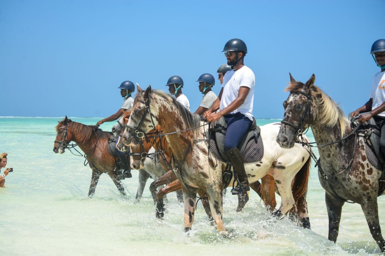 Departing from the stables, we ride south along the main beaches of Nungwi and Kendwa—walking, trotting, and cantering along this breathtaking coastline. We’ll reach Kilindi Bay, a great spot for photos, then head inland to the cultivated lands of Kilindi. Stop at another stable to visit the facilities and meet other horses while enjoying a short refreshment. After a ~30-minute break, we ride back north, ending with a 7 km beach canter along Kendwa and Nungwi’s white sands. Free time in the afternoon and 30-minute swim with the horses.