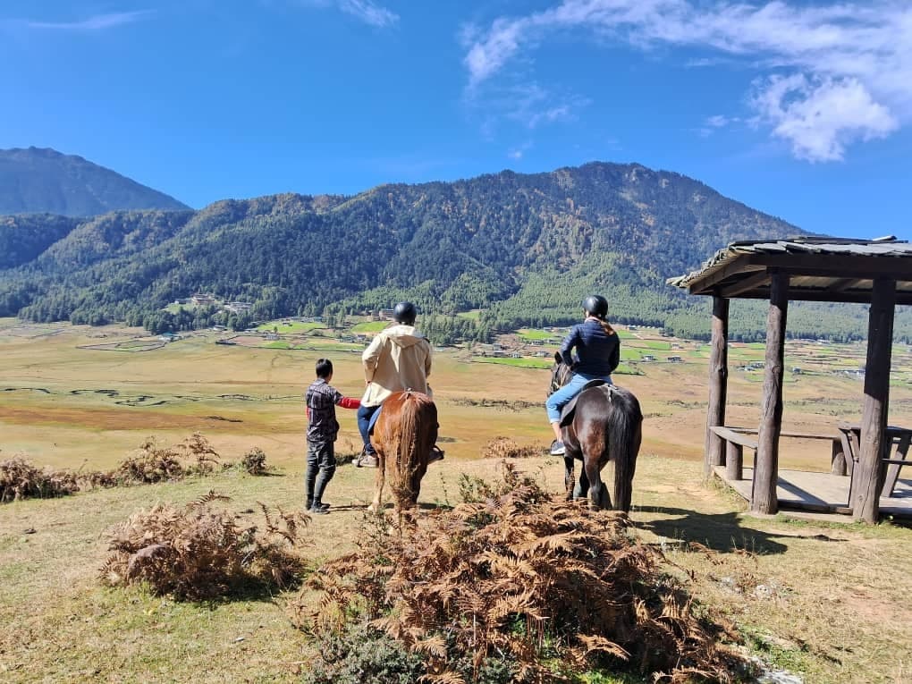 Depart for Gangtey, approx. 120 km, crossing the 3 100 m Dochula Pass with stunning views of the eastern Himalayan range, including Bhutan’s highest peak. Continue for about 3 hrs via Punakha and Wangdue to Gangtey Valley. Upon arrival, visit the stables for a short introductory horseback ride—likely along the famous Gangtey Nature Trail—weather permitting. Overnight in Gangtey.