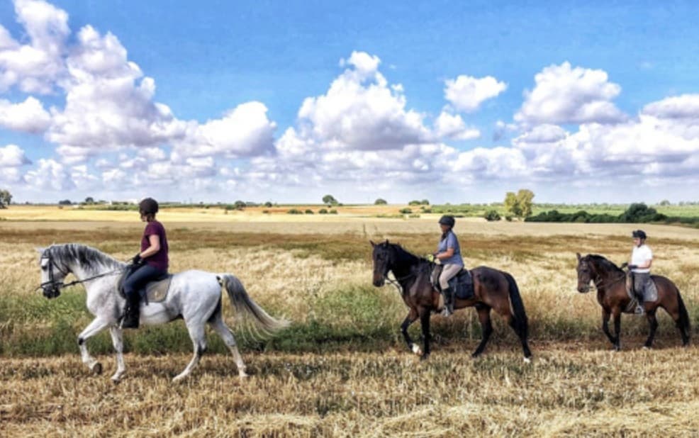 After breakfast and a quick transfer to the Hacienda, you mount your horse and depart toward the Roman Bridge. Depending on the season, you will ride through fields of sunflowers, wheat, cotton, oranges, or peaches, crossing centuries-old olive groves still carefully maintained today. This is a landscape without fences.