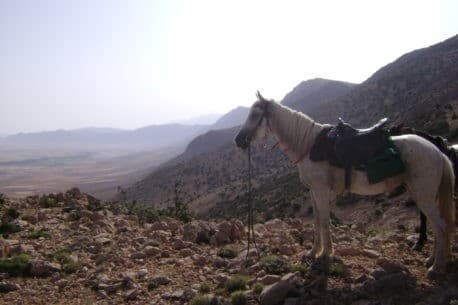 Arriveremo fino alle montagne di Tchachoukt, dove ci arrampicheremo fino ai 2000 metri per scoprire una bellissima vista sulla valle Gigou. Passeremo il fiume Ain Nokra dove i cavalli potranno abbeverarsi , canyons, vallate e grossi alberi. Pernottamento in tenda.