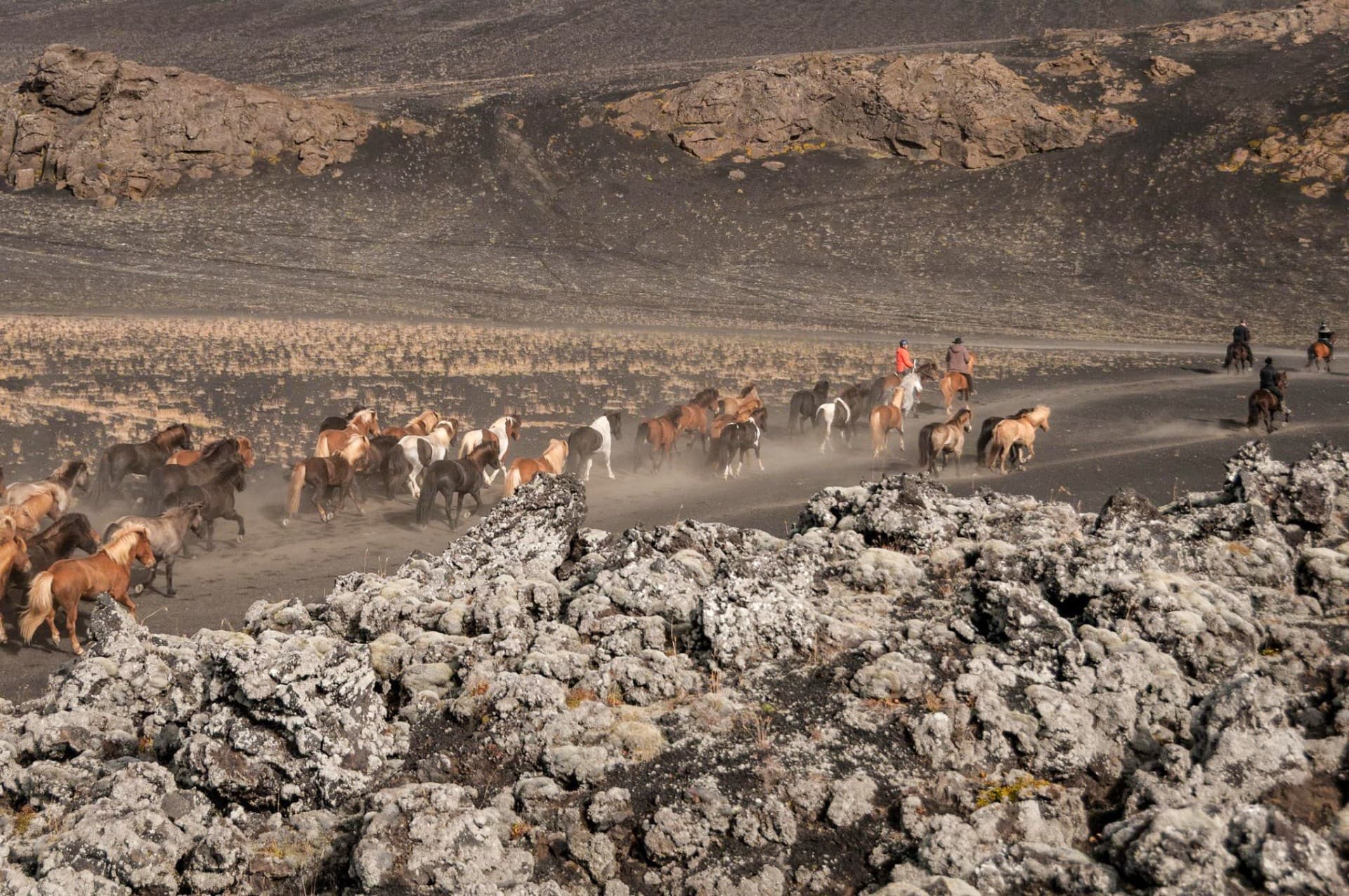 Volete andare a cavallo in Islanda? …Immaginate un branco di cavalli liberi ed inselvatichiti galoppare lungo i pendii delle colline dei loro pascoli estivi per rientrare dai loro proprietari. Fattrici coi loro puledri, giovani cavalli e capi branco che vengono a fatica strappati dalla loro libertà per permettere loro di ripararsi altrove in attesa del gelido inverno…quest’antica tradizione è rimasta viva ed intatta solo nel nord dell’Islanda. Cavalcherete fianco a fianco con i fattori in quest’impresa d’autunno e festeggiate con loro il ritorno alla fattoria dei cavalli sani e salvi con la danza tradizionale chiamata “réttardansleikur”, alla quale saremo invitati a partecipare se vogliamo. Attraverserete paesaggi incantati: vallate infuocate dai colori d’autunno, il rosso ed il giallo domineranno la scena, il blu intenso dei laghetti di montagna e la fredda roccia delle gole di Kolugljúfur. La leggenda narra che il queste gole vivesse una donna troll…e le proporzioni ci fanno credere che ci sia del vero in questa leggenda….