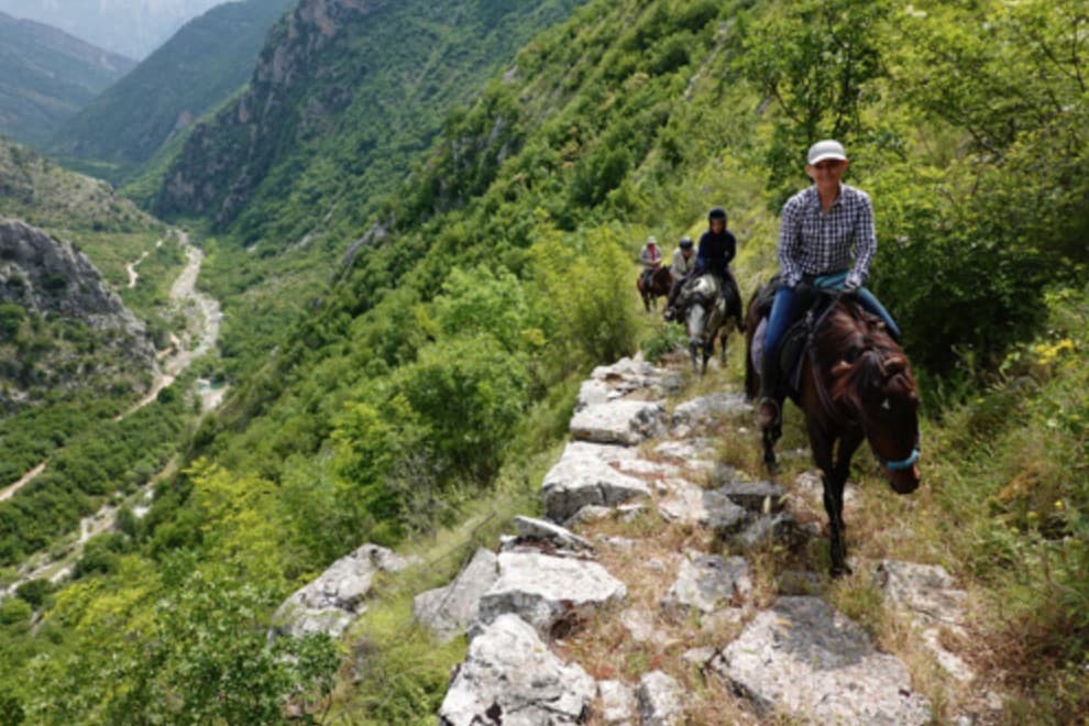 Il nostro viaggio ci porterà a scoprire antiche rovine della civiltà illirica, villaggi medievali, molte chiese e monasteri remoti. Molto interessanti anche i ponti, dal design unico, costruiti durante il periodo di Ali Pasha. La prima e l'ultima notte, soggiornerete nella bellissima città di Gjirokastra, un sito nominato Patrimonio dell'Umanità dall'UNESCO mentre nei giorni successivi sarete ospiti di locali, che vi apriranno con calore le loro case e vi serviranno il miglior cibo della tradizione culinaria locale. Il culmine di questo straordinario trekking sarà la scalata su Swallow's Rock. Innoltrandoti sempre più in questa terra carica di misticismo, intricati miti e leggende conoscerai le tradizioni rurali albanesi. Ci aspettano circa 170 km in sella con una media di 6 h al giorno circa; i cavalli utilizzati in questo trekking sono un mix della razza locale chiamata Tarpan e cavalli arabi: piccoli ma perfettamente adatti al terreno roccioso, equilibrati ed affidabili, di modo che voi possiate rilassarvi e godere dei panorami mozzafiato. I tuoi bagagli saranno trasportati in auto, mentre potrei tenere con te le cose indispensabili grazie alle comode bisacce.