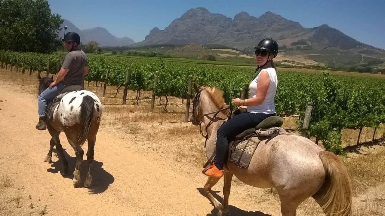 Dopo colazione tutti in sella attraverso i lunghissimi filari carichi di grappoli. Godremo di bellissime viste sulla Valle di Paarl . Seguiremo poi le colline di Simonsberg Mountain verso Anura Wine Estate, una lunghissima pista che ci permetterà di godere di un bel galoppo sostenuto. Degustazione alla tenuta di Anura, prima di passare al delizioso ristorante con menù alla carta. Rientreremo per le 4 del pomeriggio circa, e avremo tempo per un tuffo in piscina prima della deliziosa cena preparata da chef locali. Pernottamento in farm.