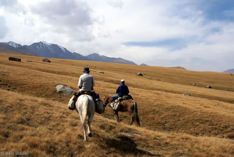 Cavalcheremo attraversando la Vallata di Orto-Bulak per poi guadare il fiume di Juuku. Arriveremo fino alle sorgenti termali di Jyluu-Suu per poi risalire fino all’omonima vallata. La famosa scrittrice e fotografa svizzera Ella Maillart, percorse queste vallate in sella nel suo viaggio in Kirgistan nel lontano 1932.